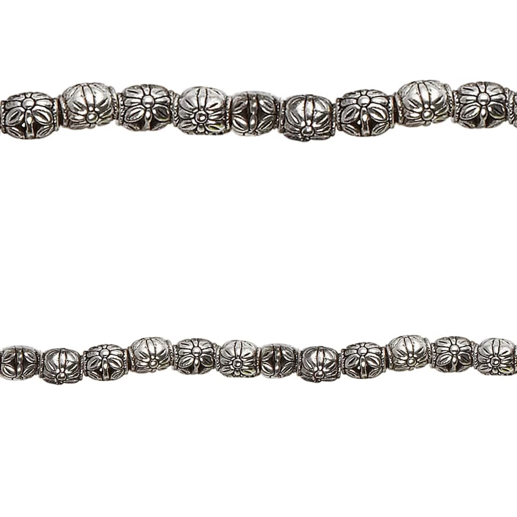 These stylish silver-plated beads, perfect as spacers, feature a lovely antiqued flower pattern. Combine with other beads or a pendant to complete your one-of-a-kind design.