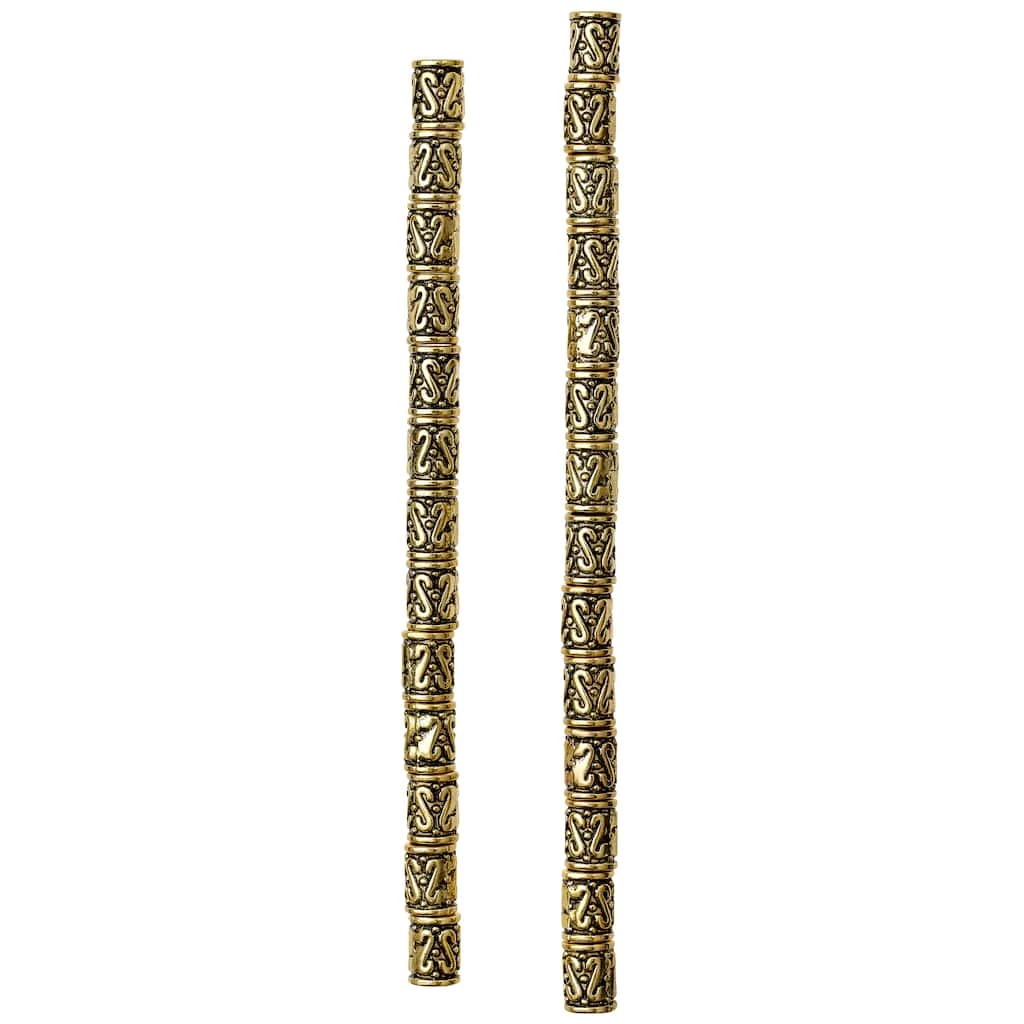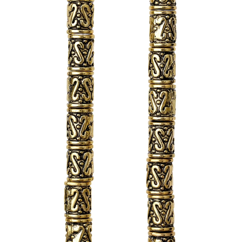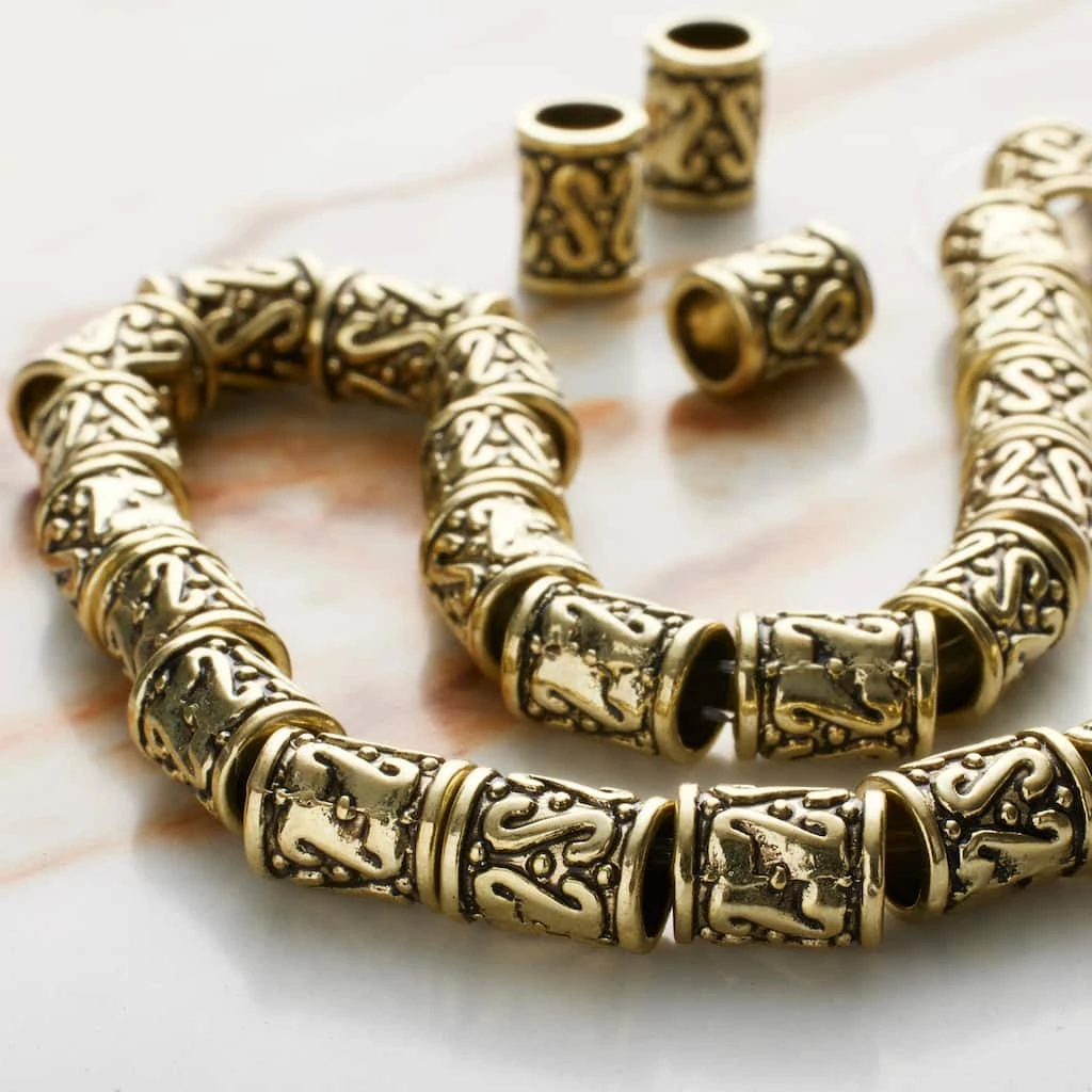 Use these intricately carved metal tube beads to make DIY jewelry like earrings, bracelets, necklaces, and anklets. To enhance the visual appeal of your DIY design, team them with other colorful round beads and a chunky pendant.
