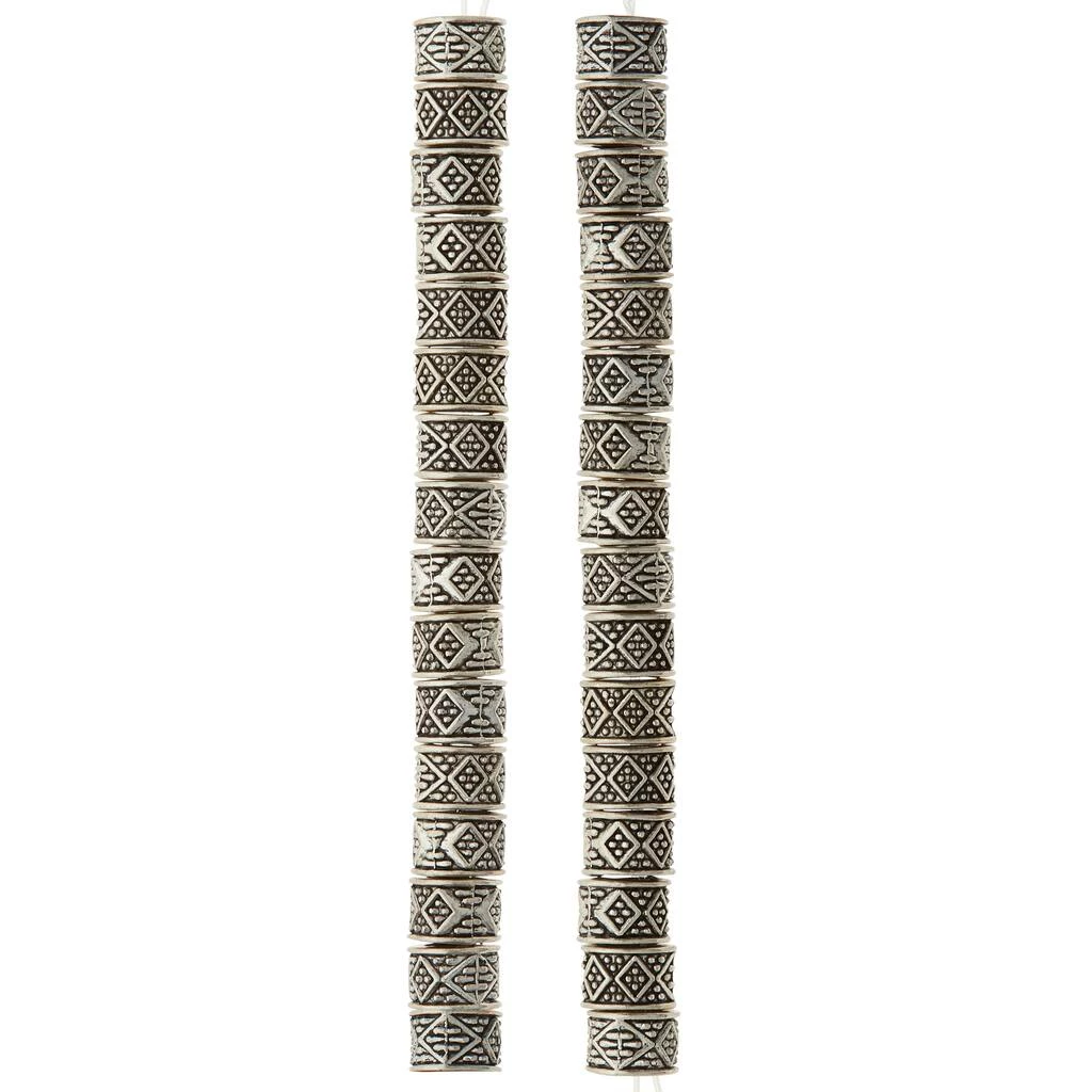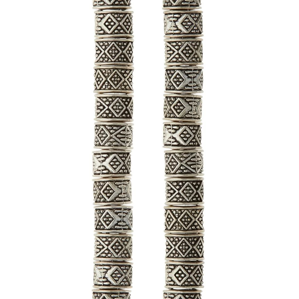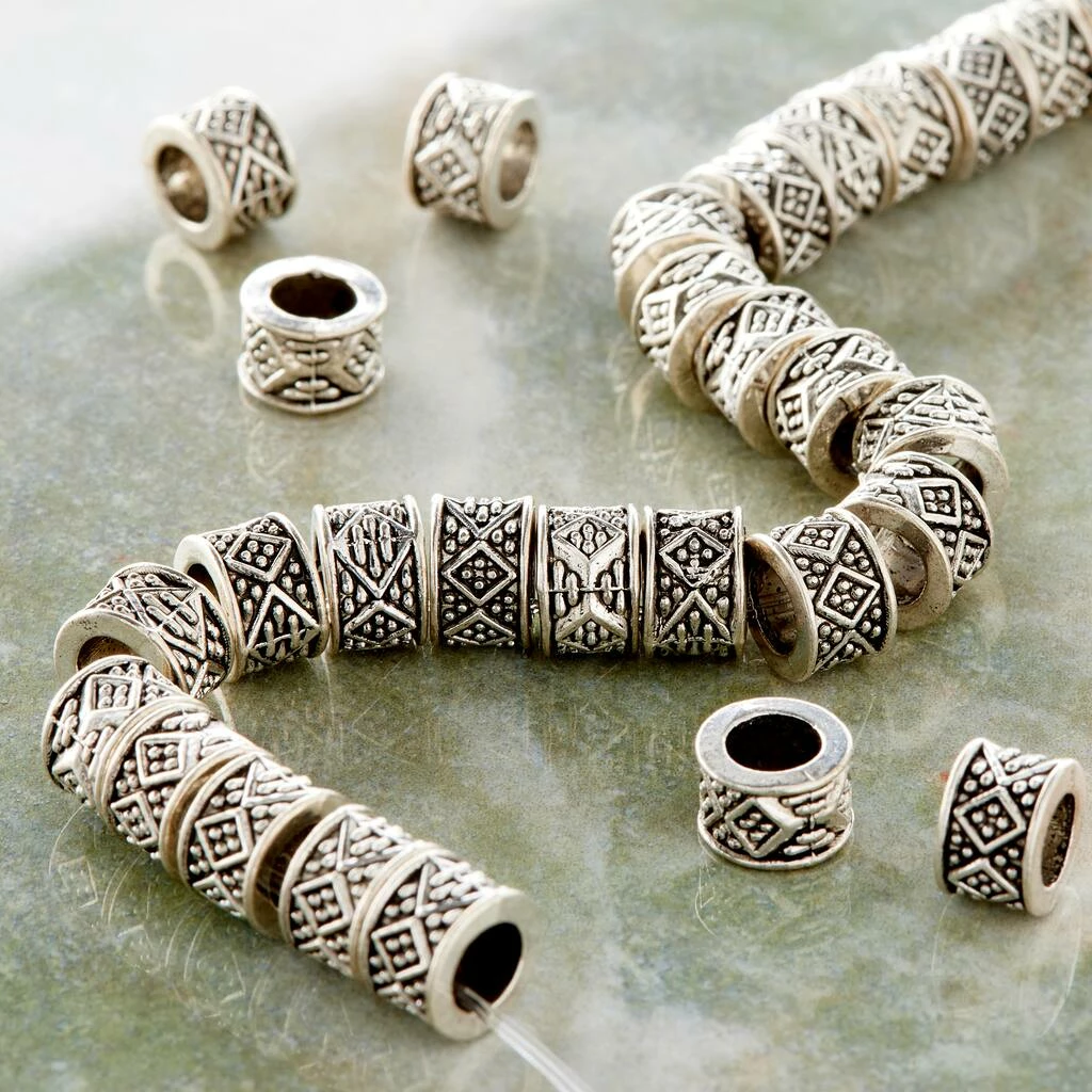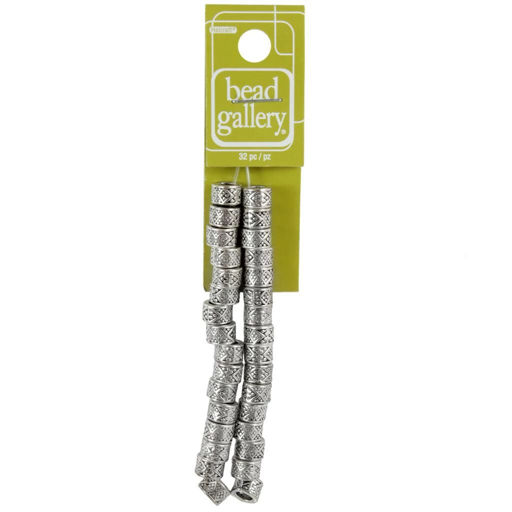 These stylish silver-plated rondelle beads feature a carved geometric shaped pattern. Combine with other beads or a pendant to complete your one-of-a-kind design.