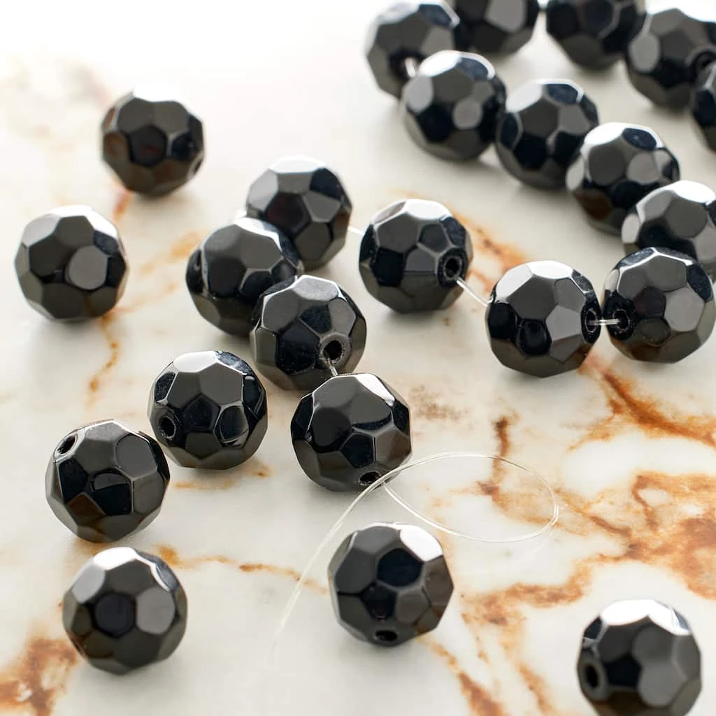 Glass beads are perfect for bringing shine to your jewelry designs. These stylish black beads feature smooth, faceted cuts all around the bead. Combine with other beads or a pendant to complete your one-of-a-kind design.