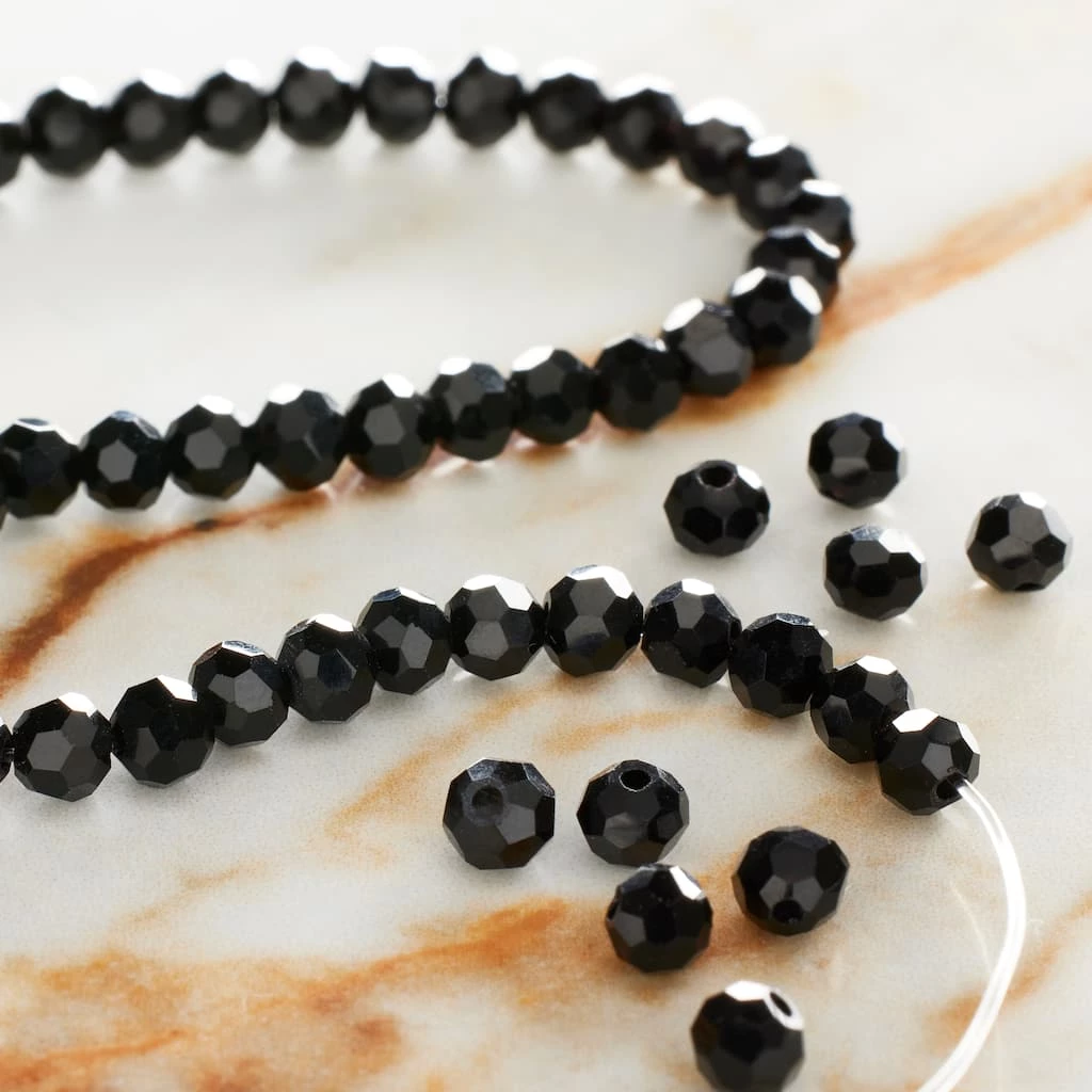 These glass beads are perfect for bringing deep black color and shine to your own jewelry designs. Shiny faceted glass brings bling factor to any project. They are perfect for use with any cord: stretch cord for easy bracelets, nylon cord for beginner jewelry designs or tigertail for more advanced projects.ย