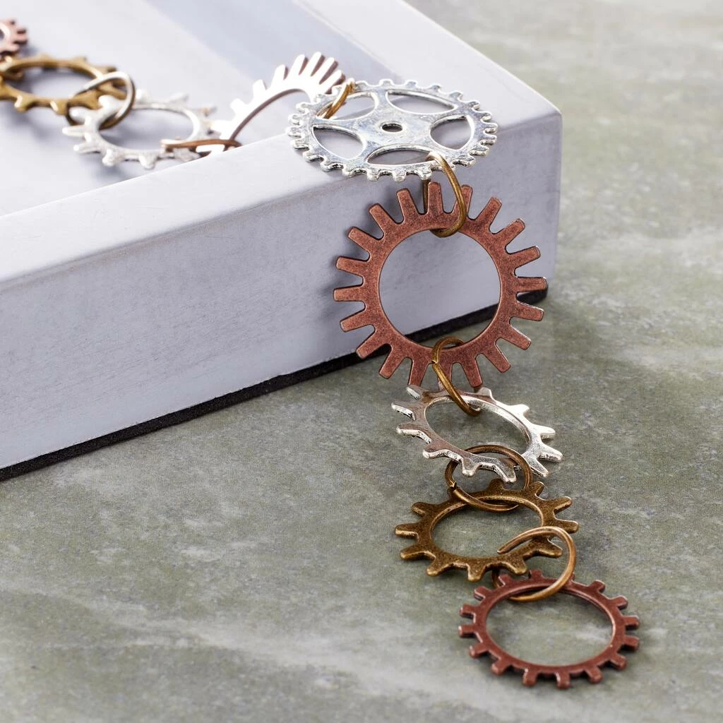 Design gear-themed jewelry and accessories with these Bead Gallery metal gear beads. They are ideal for making long necklaces or earrings and can also be used to create wind chimes and dream catchers. Team them with colored twine, thread, and embellishments for enhanced style.