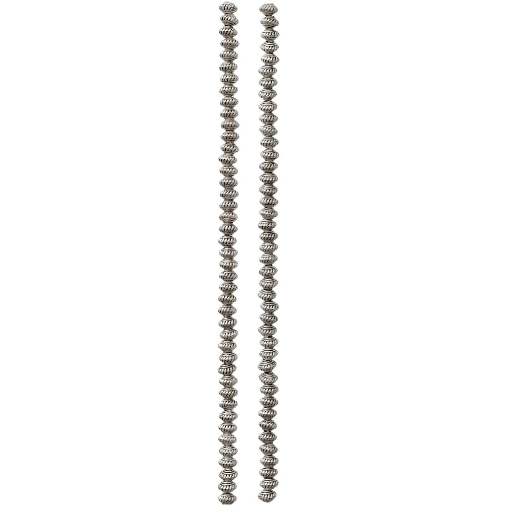 These stylish silver-plated rondelle beads feature a carved rope pattern around the edge. Combine them with other beads or a pendant to complete your one-of-a-kind design.