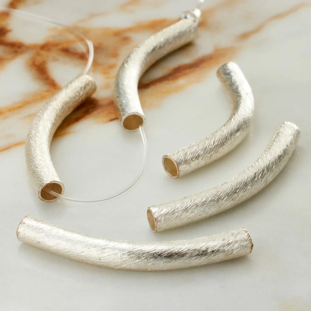 Adorn your wrist with a dainty bracelet made using these silver tube beads from Bead Gallery. You can intersperse the bracelet with round metallic gray beads or disc charms.