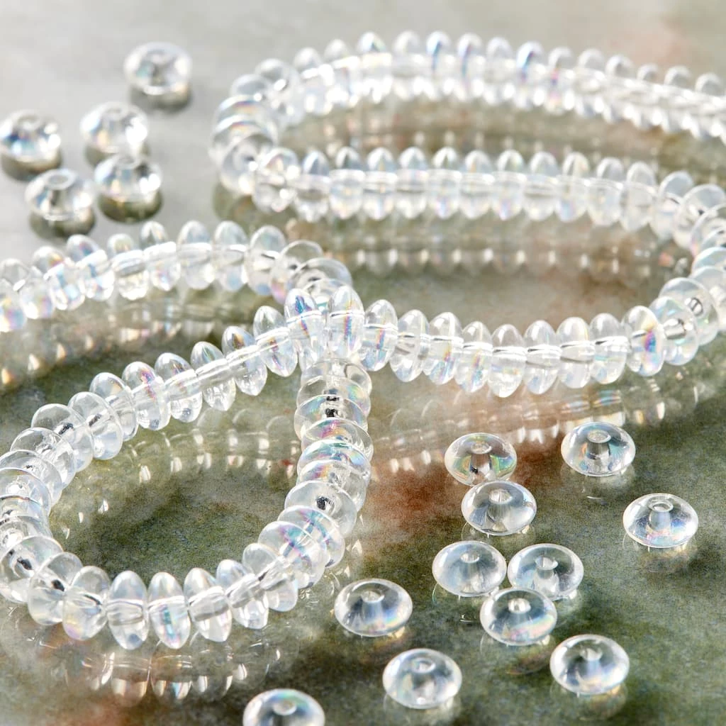 Bring iridescent shimmer to your handmade jewelry. These crystal aurora borealis beads look great on earrings, rings, necklaces and anklets. Use these donut-shaped beads with stretch cord, nylon cord or even jewelry wire.