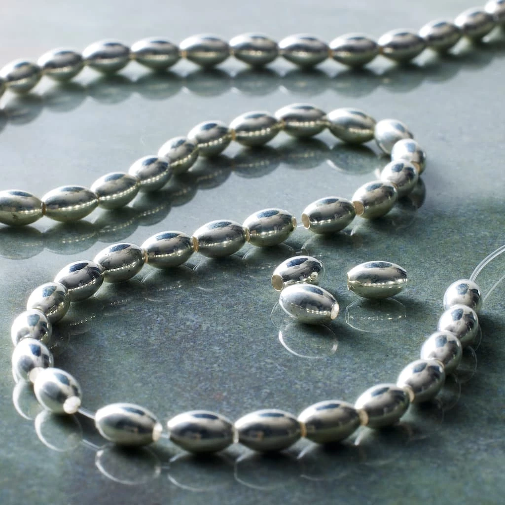 Use these oval shaped metal beads as spacers for your jewelry designs. These small accents feature a shiny finish and are perfect for makingΒ bracelets, colorful bead necklaces, unique anklets, and more.