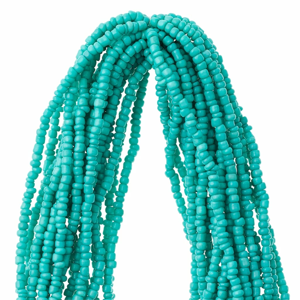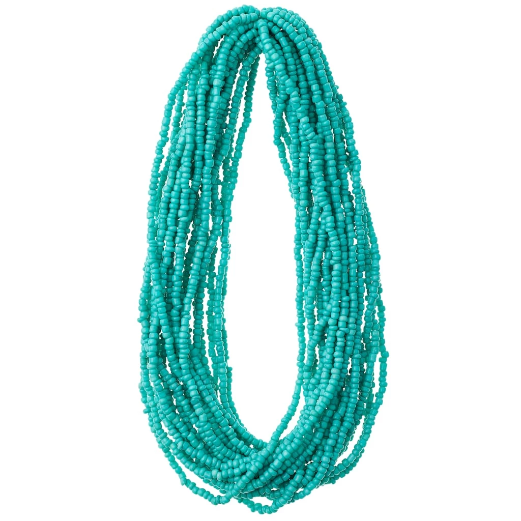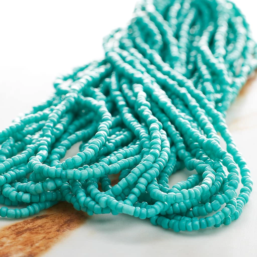 Create a lovely layered necklace by combining these turquoise glass seed beads with metal spacers. You can also use these bright accents to accentuate throw pillows, tote bags, and other fabric projects.